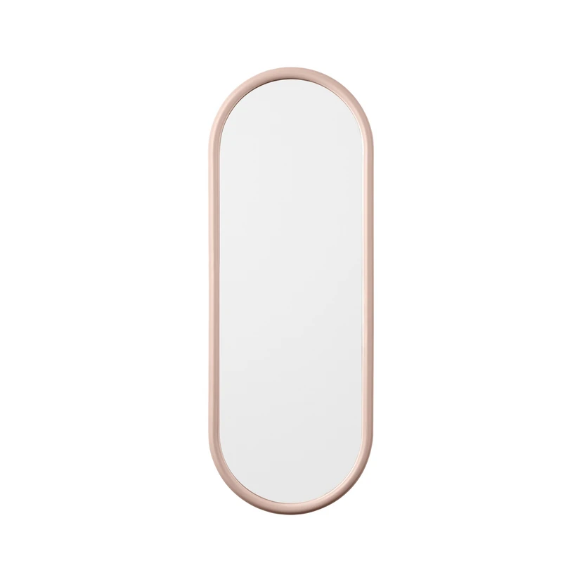 Angui Mirror H78 Rose stands out with a beautiful round minimalist shape framed by a simple and elegant industrial metal tube style that makes it perfect for traditional and modern homes alike. The mirror comes in two sizes and various colours, making it easy to fit into your bedroom, hallway, or bathroom, where you need a refined home accessory to amplify your personal style. Thanks to its incredible style, the Angui mirror has received the Wallpaper Magazine Award—an annual award that honours stunning design. On top of serving as an aesthetically pleasing mirror, the big Angui mirror is equipped with a discreet clothes stand for clothes hangers on the back, making it perfect for your wardrobe.