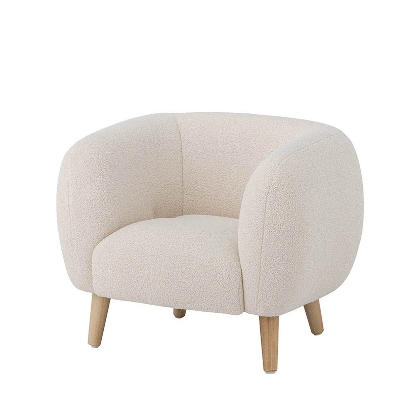 The Cade Chair White - Bloomingville is the perfect addition to your home, specially designed for the little ones in your family. This charming Bloomingville MINI chair is made to give your child their very own space in the living room or as a decorative element in the nursery. With its soft and inviting shape, it's ideal for creating a cosy atmosphere where your child can relax and enjoy their own space.
